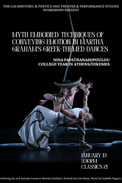 «Χορεύοντας τους Αρχαίους Ελληνικούς Μύθους: Δίκη και Λύτρωση στην Clytemnestra της Μάρθα Γκράχαμ», στο ΣΥΝΕΔΡΙΟ του ΕΚΠΑ «Χορός, Αρχαίο Δράμα και Μύθος», Πανεπιστήμιο Αθηνών, 20 Ιανουαρίου 2025.